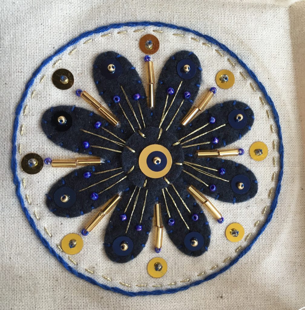 So far, over 400 teardrops, crosses and circles have been stitched but we still need more. The completed shapes will be added to the larger panel and also joined together to make smaller panels.