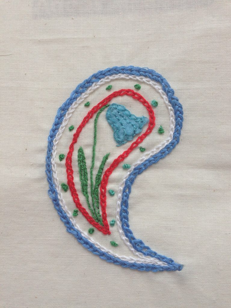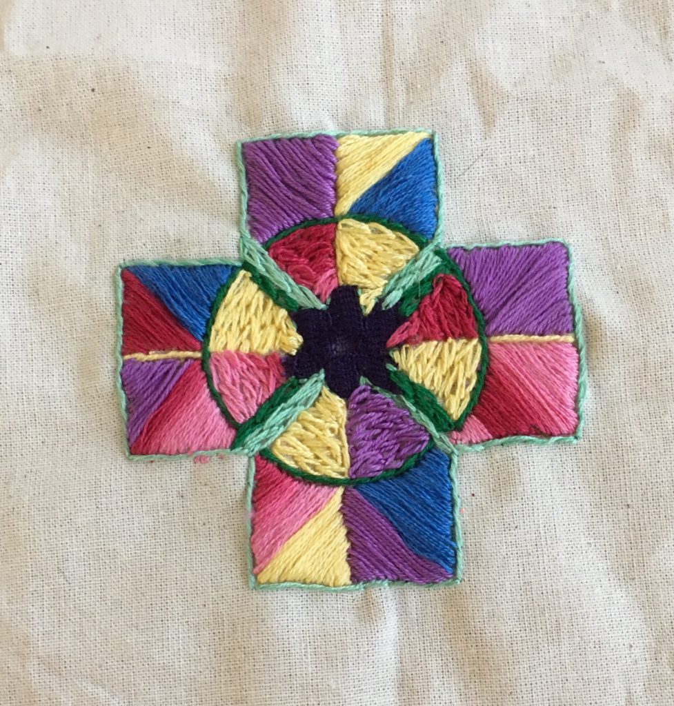 Stitching a teardrop, circle or cross is a easy way to become part of the project. You can download a template for the size and stitch a design. You can use any materials you like.